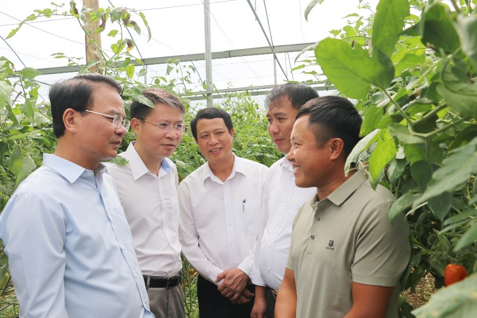 Bí thư Tỉnh ủy Đặng Xuân Phong thăm mô hình sản xuất trồng cà chua trong nhà lưới trên địa bàn xã Pà Cò