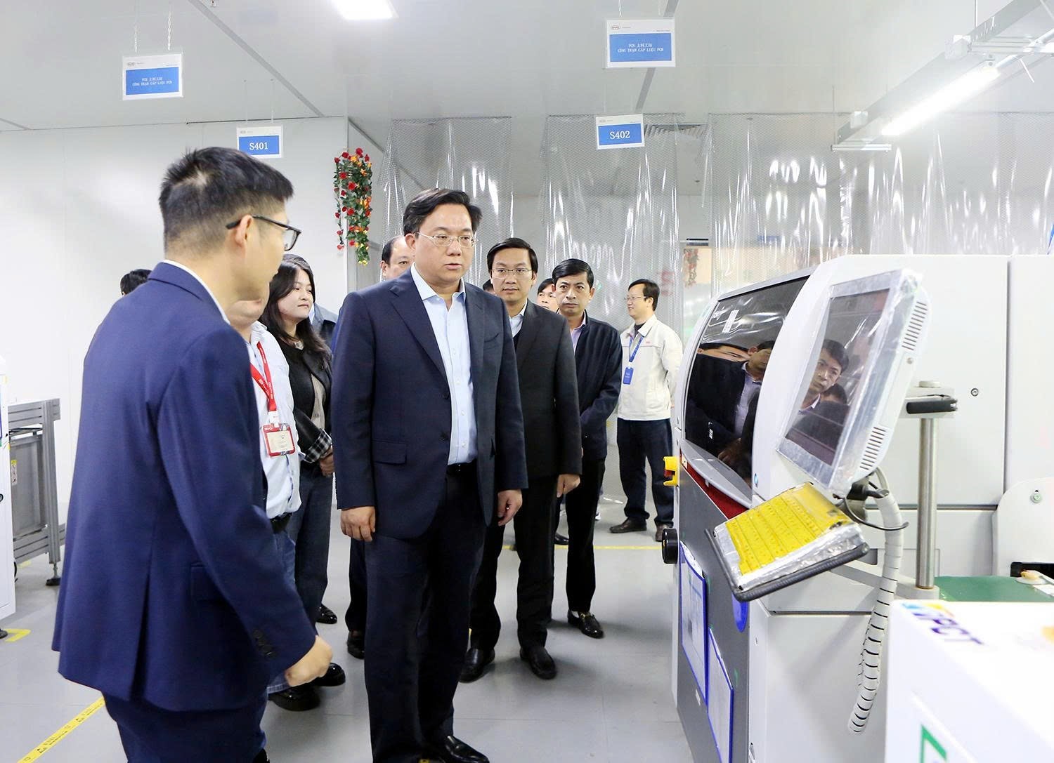 Chủ tịch UBND tỉnh Trần Duy Đông thăm quan dây chuyền sản xuất của Công ty TNHH Điện tử BYD Việt Nam