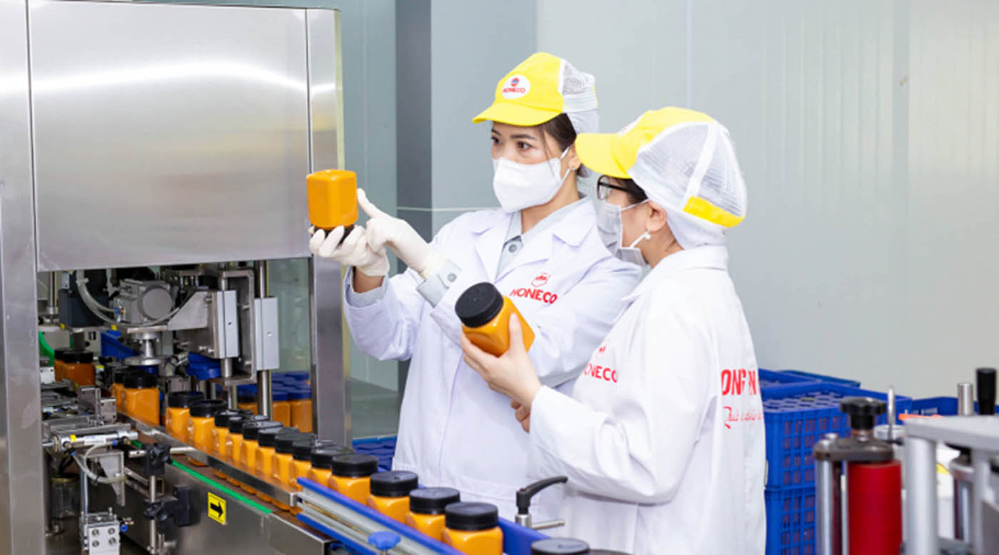 Tổng Giám đốc Công ty cổ phần Ong Tam Đảo Lê Thị Nga (bên trái) kiểm tra chất lượng sản phẩm