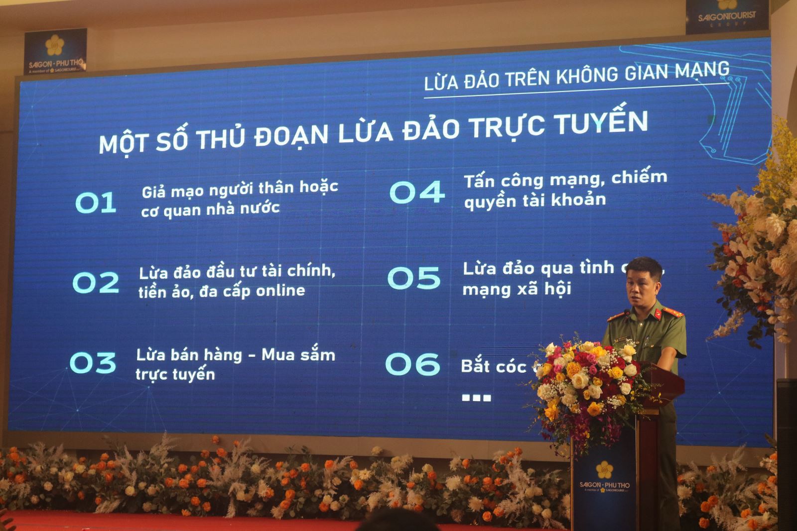 Lãnh đạo Phòng An ninh mạng và phòng, chống tội phạm sử dụng công nghệ cao (Công an tỉnh) tham luận tại Hội thảo