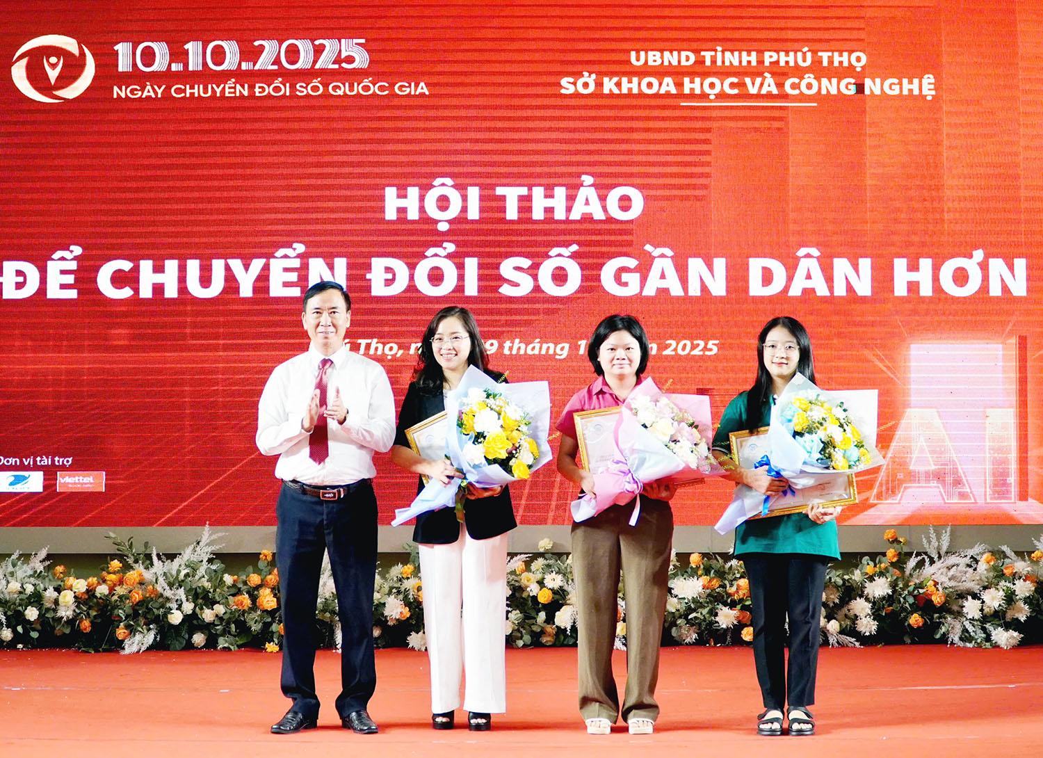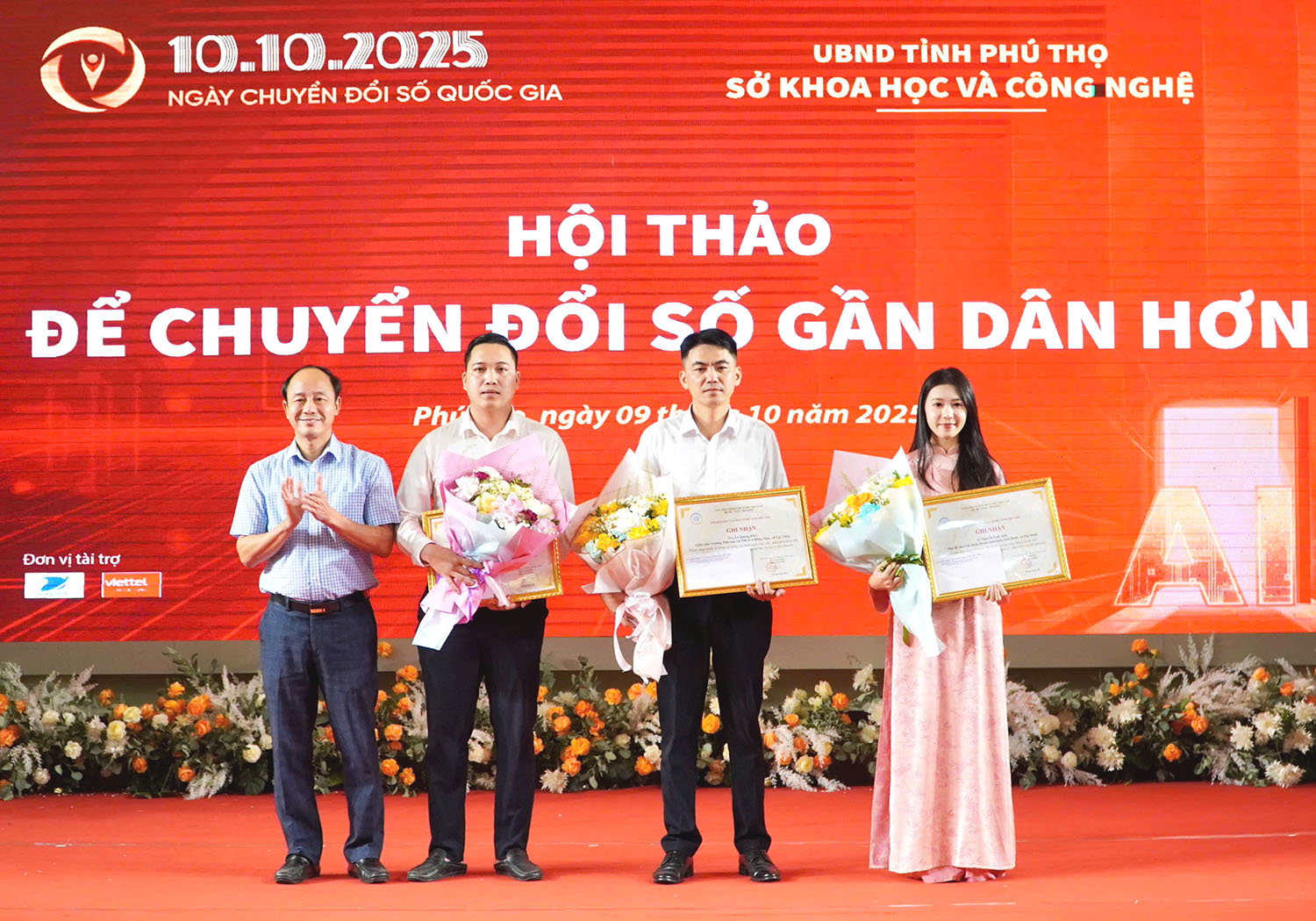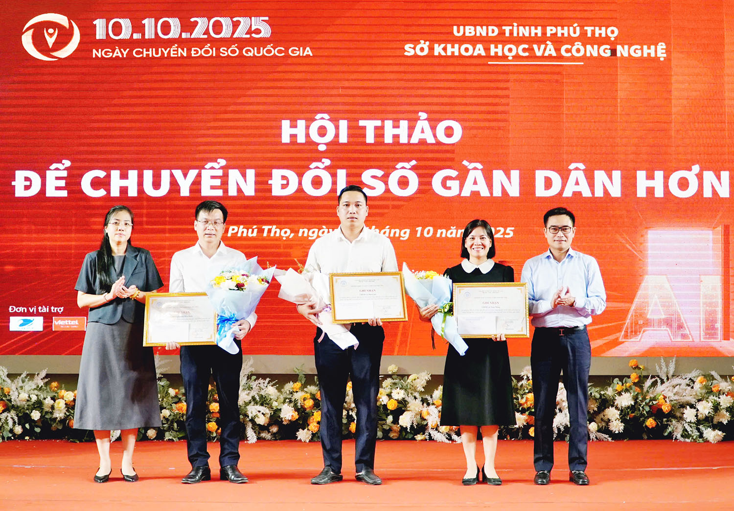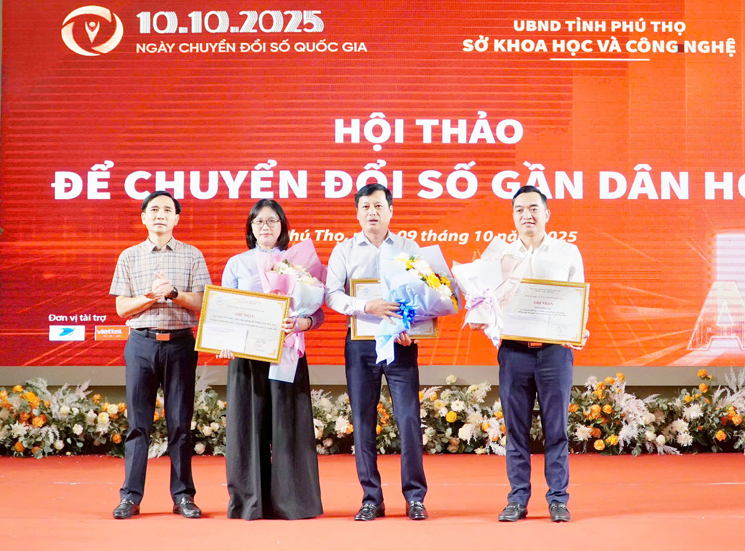 Tại Hội thảo, đã có 6 tập thể và 3 cá nhân là các cơ quan nhà nước, doanh nghiệp, công dân tiêu biểu trong thực hiện chuyển đổi số tỉnh Phú Thọ được tôn vinh.