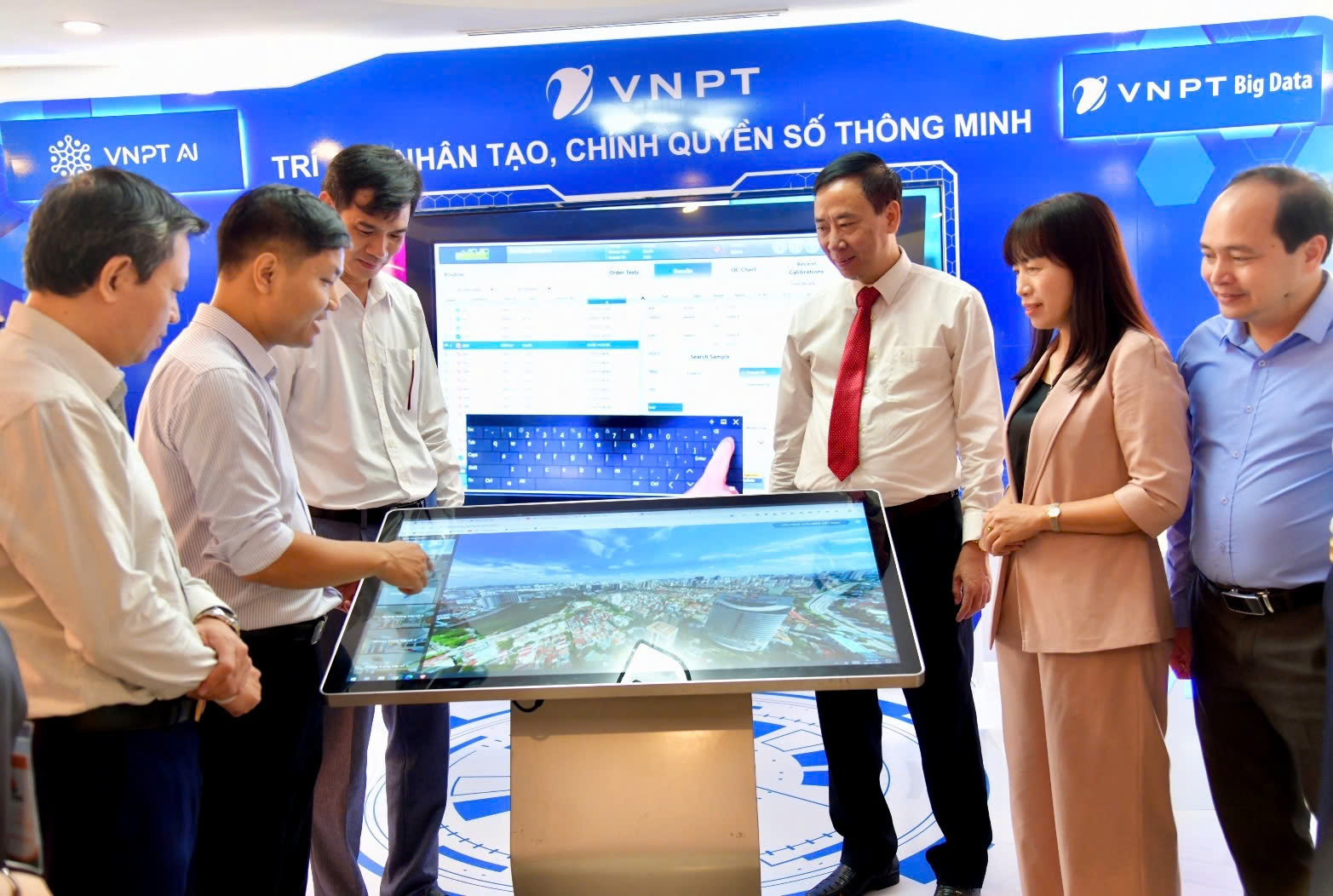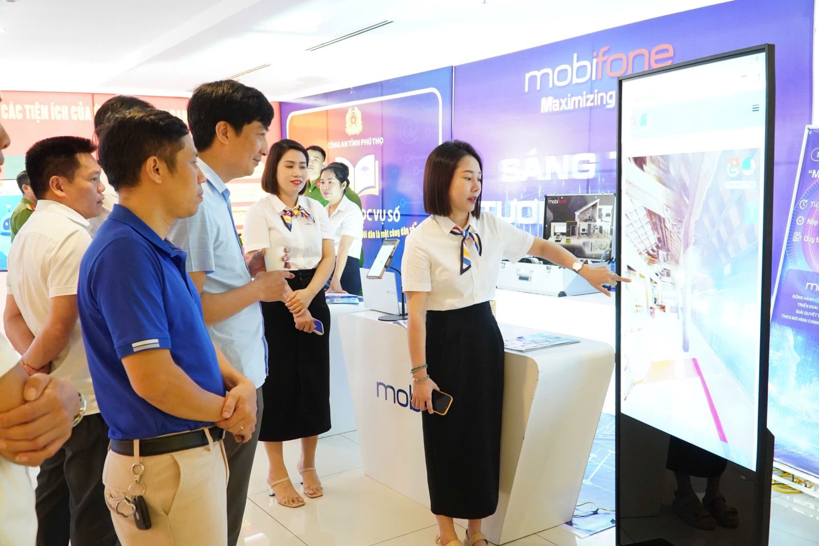 Đồng chí Hoàng Mạnh Du - Phó Giám đốc Sở Khoa học và Công nghệ và các đại biểu tham quan gian hàng trưng bày của VNPT Phú Thọ tại Hội thảo