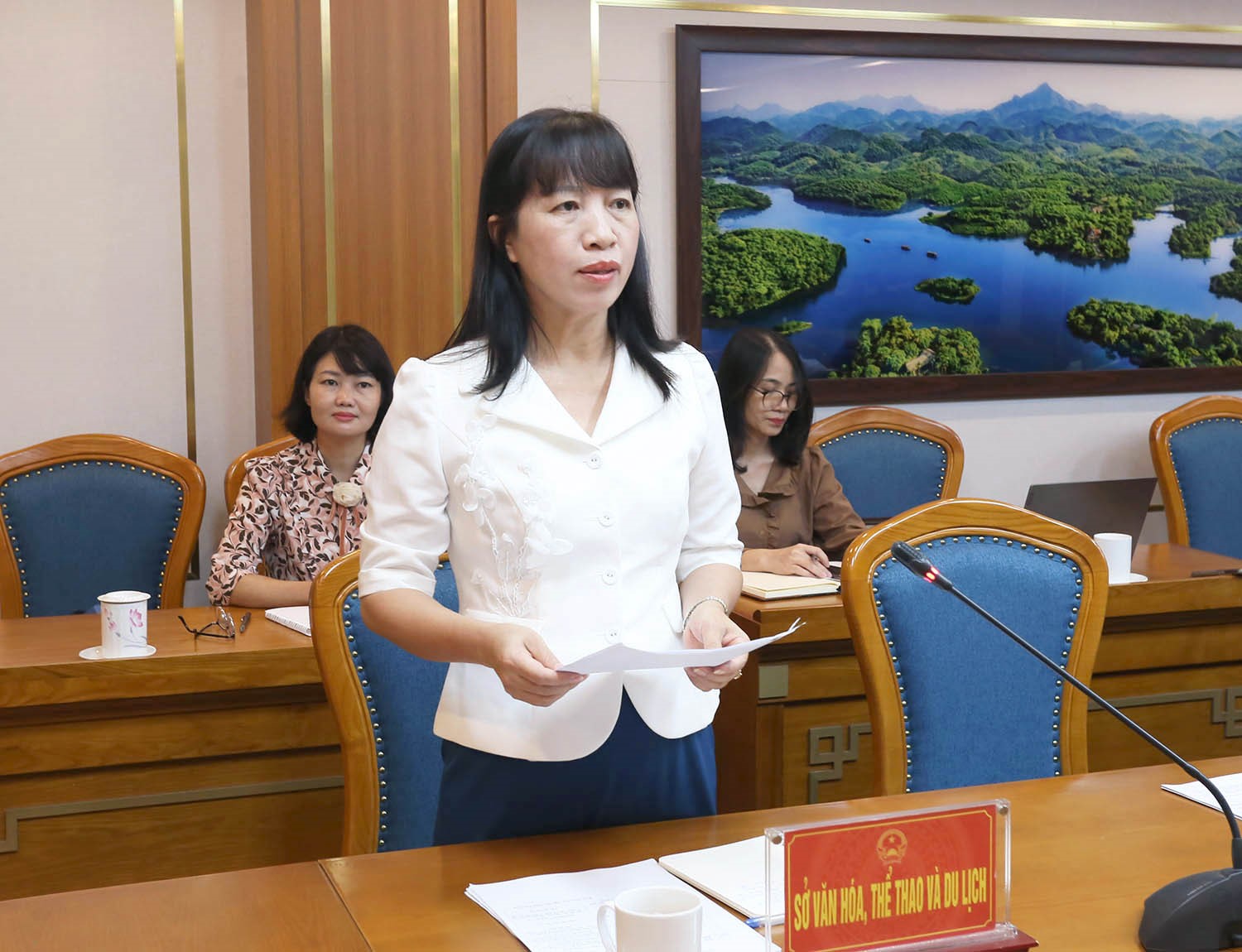 Đại diện lãnh đạo Sở Văn hóa, Thể thao và Du lịch báo cáo tóm tắt công tác chuẩn bị Trung tâm Báo chí