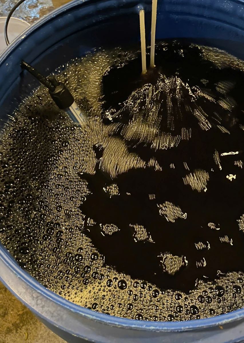 Chủ vườn cam Vita Garden tự ủ xạ khuẩn Streptomyces để chăm sóc cây cam.