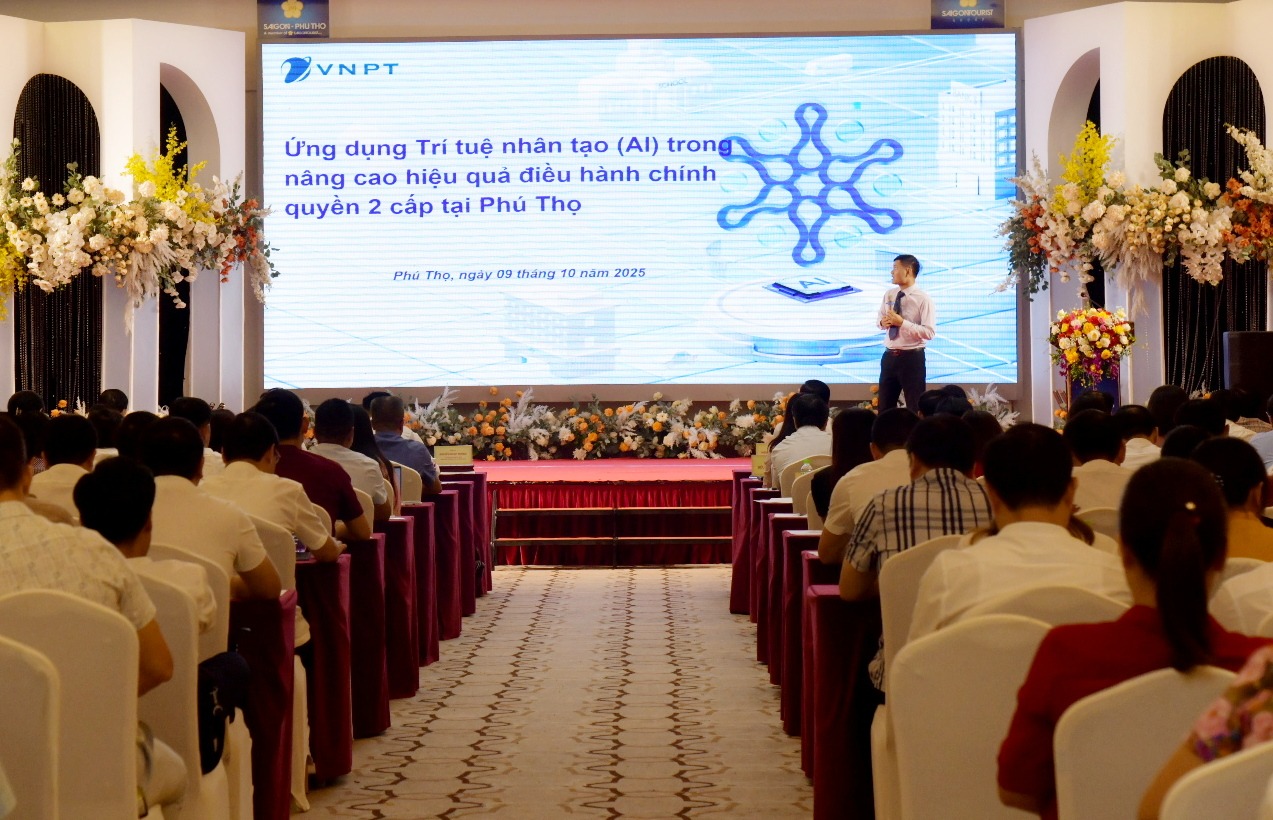 Đại diện VNPT Phú Thọ tham luận Ứng dụng Trí tuệ nhân tạo (AI) trong nâng cao hiệu quả điều hành chính quyền 2 cấp tỉnh Phú Thọ tại Hội thảo “Để chuyển đổi số gần dân hơn” do Sở Khoa học và Công nghệ tổ chức ngày 09/10/2025