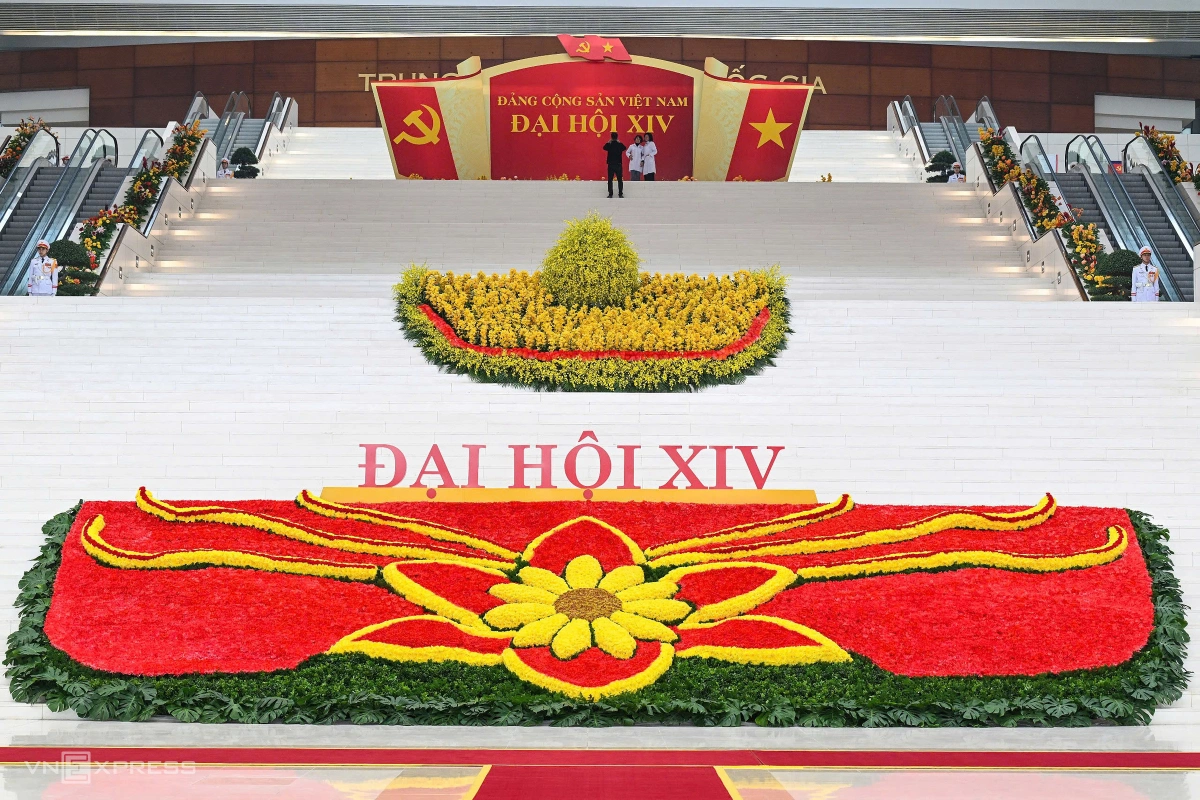 Sáng 14/1, Trung tâm Hội nghị Quốc gia (Hà Nội) đã được trang hoàng cờ hoa, biểu ngữ. Công tác chuẩn bị, bảo đảm an ninh, an toàn được triển khai từ nhiều ngày trước và đang hoàn tất những khâu cuối cùng. Đây là nơi diễn ra Đại hội đại biểu toàn quốc lần thứ XIV của Đảng, từ 19 đến 25/1.