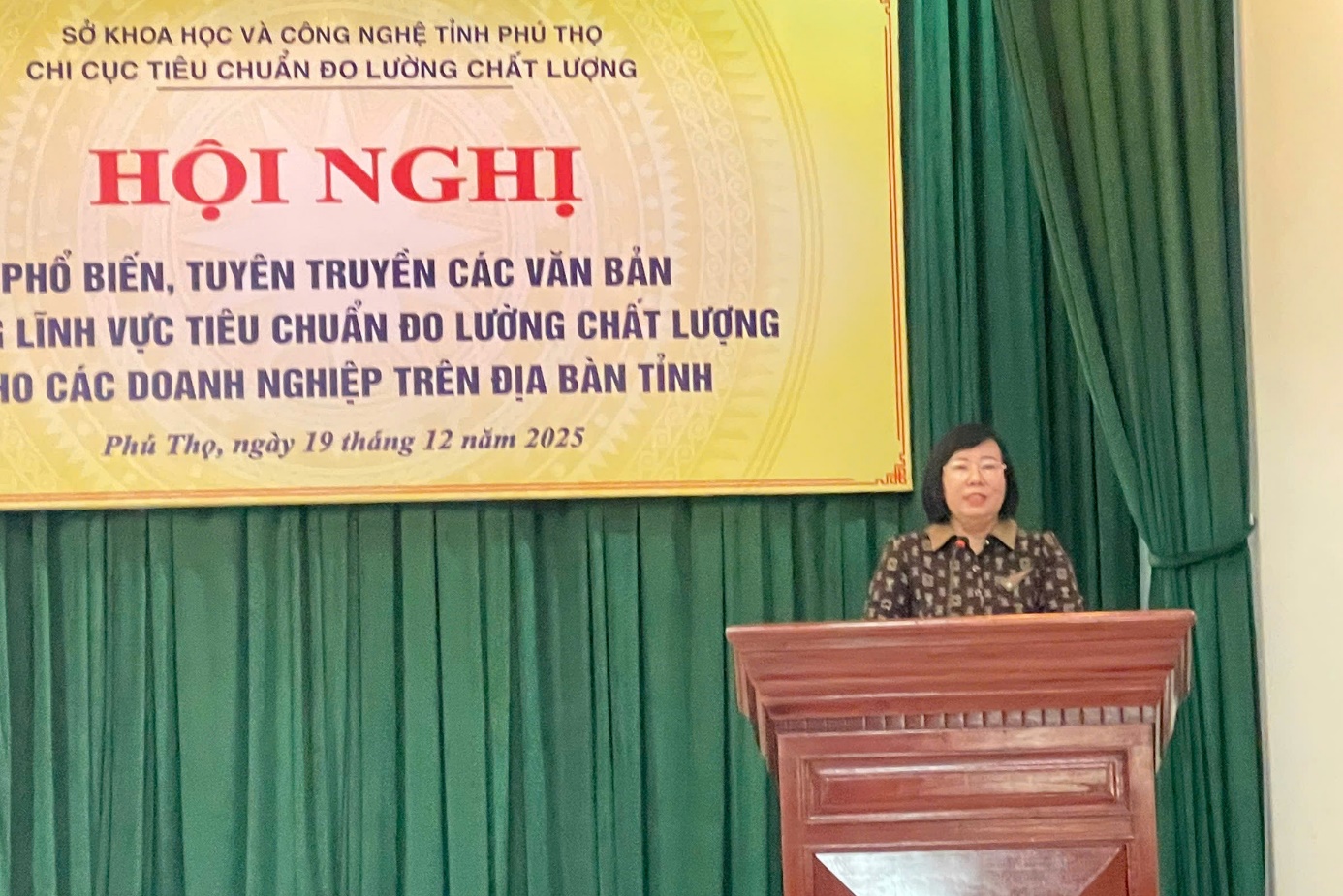 Ngày 19/12/2025, Chi cục Tiêu chuẩn Đo lường Chất lượng tỉnh Phú Thọ (Chi cục TĐC) đã tổ chức Hội nghị tuyên truyền, phổ biến các văn bản quy phạm pháp luật về tiêu chuẩn, đo lường, chất lượng cho các doanh nghiệp kinh doanh xăng dầu; các doanh nghiệp kinh doanh vàng trang sức mỹ nghệ; các doanh nghiệp, Hợp tác xã (HTX) kinh doanh dịch vụ điện trên địa bàn tỉnh.