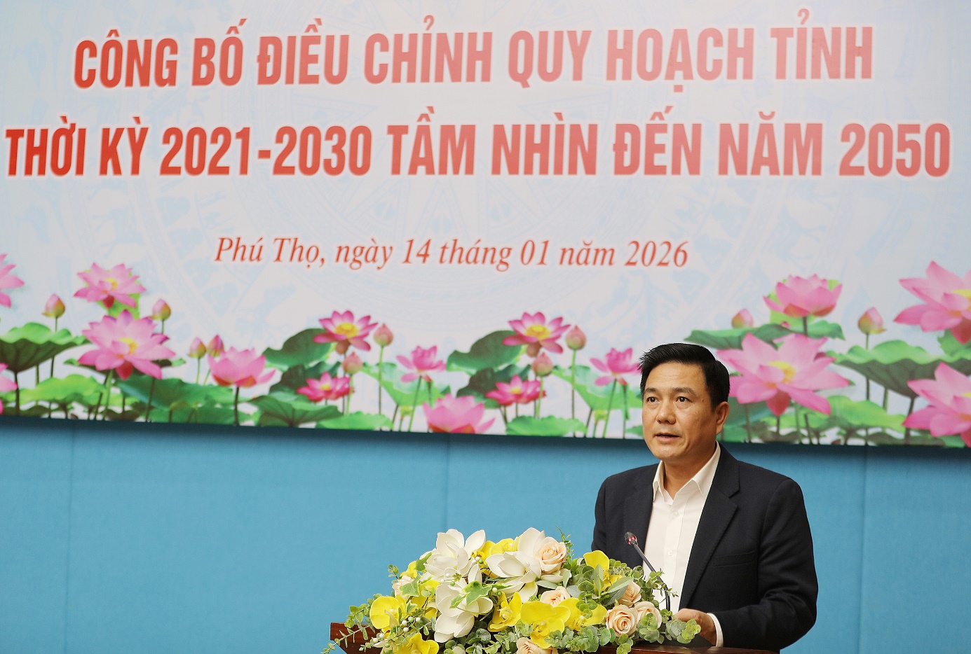 Phát biểu chỉ đạo tại hội nghị, Chủ tịch UBND tỉnh Trần Duy Đông khẳng định, hội nghị công bố Điều chỉnh Quy hoạch tỉnh Phú Thọ thời kỳ 2021 - 2030, tầm nhìn đến năm 2050 là sự kiện có ý nghĩa quan trọng đối với tỉnh Phú Thọ mới trong việc xác định tầm nhìn, định hướng phát triển cho thời kỳ mới với nhiều kỳ vọng, bứt phá. Quy hoạch điều chỉnh lần này đã thể hiện đầy đủ tư duy phát triển mới, cách tiếp cận tổng thể, dài hạn, khoa học; phản ánh đúng tiềm năng, lợi thế so sánh của tỉnh Phú Thọ mới, đồng thời bám sát các chủ trương lớn của Đảng, Nhà nước và yêu cầu thực tiễn phát triển trong giai đoạn tới.