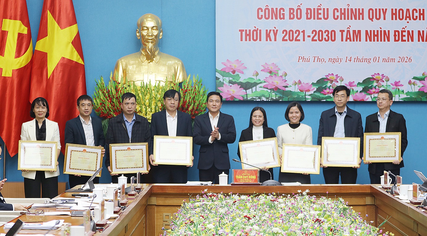 Nhân dịp này, 2 tập thể và 18 cá nhân nhận Bằng khen của Chủ tịch UBND tỉnh vì có thành tích xuất sắc trong công tác lập, điều chỉnh Quy hoạch tỉnh Phú Thọ thời kỳ 2021 - 2030, tầm nhìn đến năm 2050.
