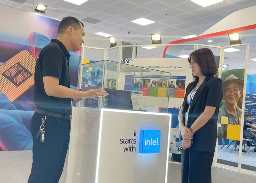 Đồng chí Chu Thị Bích Thủy - Phó Giám đốc Sở Khoa học và Công nghệ tìm hiểu về công nghệ máy tính sử dụng chip AI trong khuôn khổ Lễ hưởng ứng Ngày hội Đổi mới sáng tạo quốc gia 2025