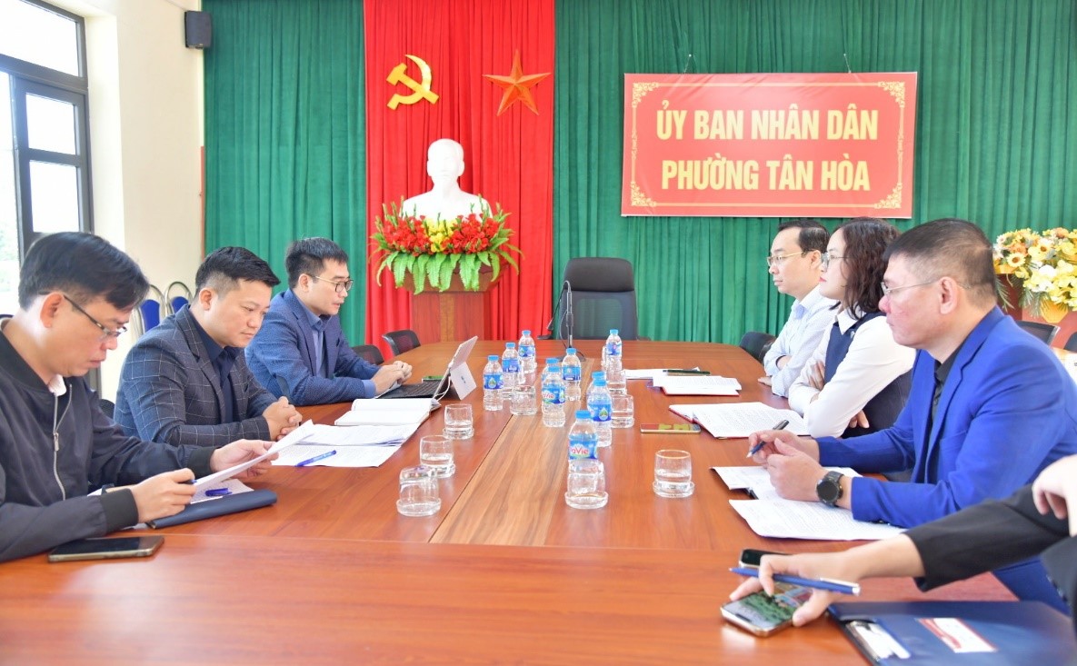 Đồng chí Bùi Đức Nam - Phó Giám đốc Sở Khoa học và Công nghệ cùng Đoàn khảo sát làm việc tại UBND phường Tân Hòa