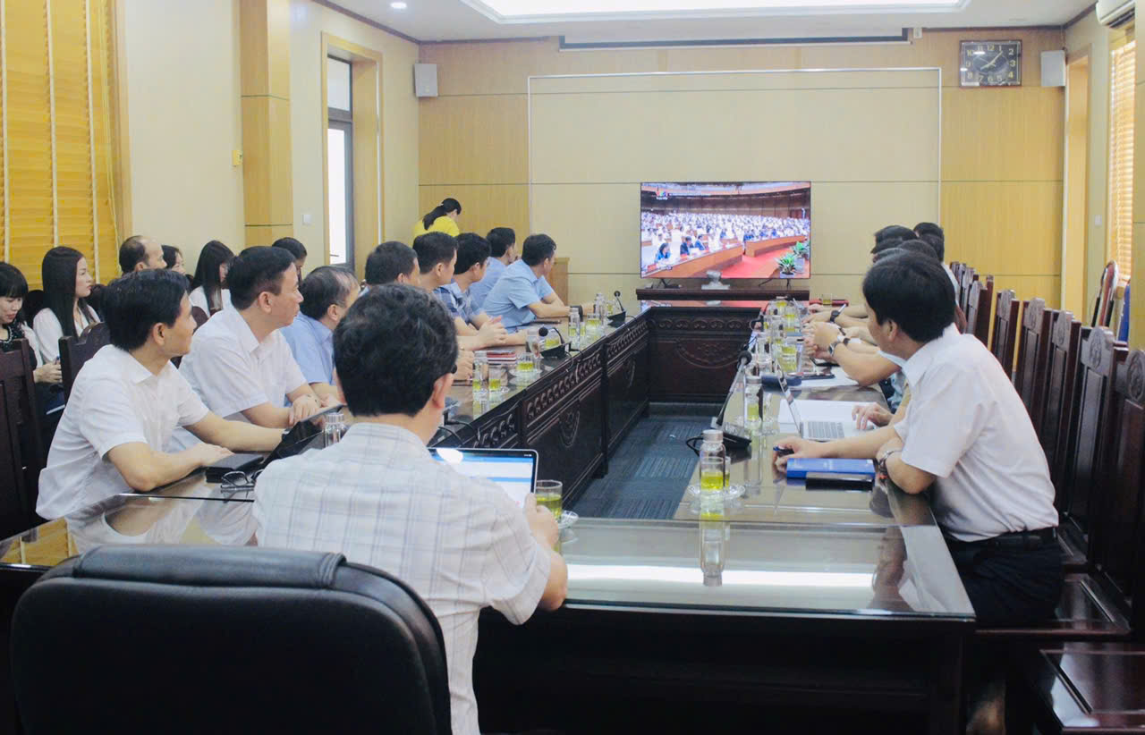 Điểm cầu Sở Khoa học và Công nghệ tỉnh Phú Thọ có sự tham dự của các đồng chí Phó Giám đốc Sở; cùng trưởng, phó các phòng chuyên môn, đơn vị trực thuộc Sở.
