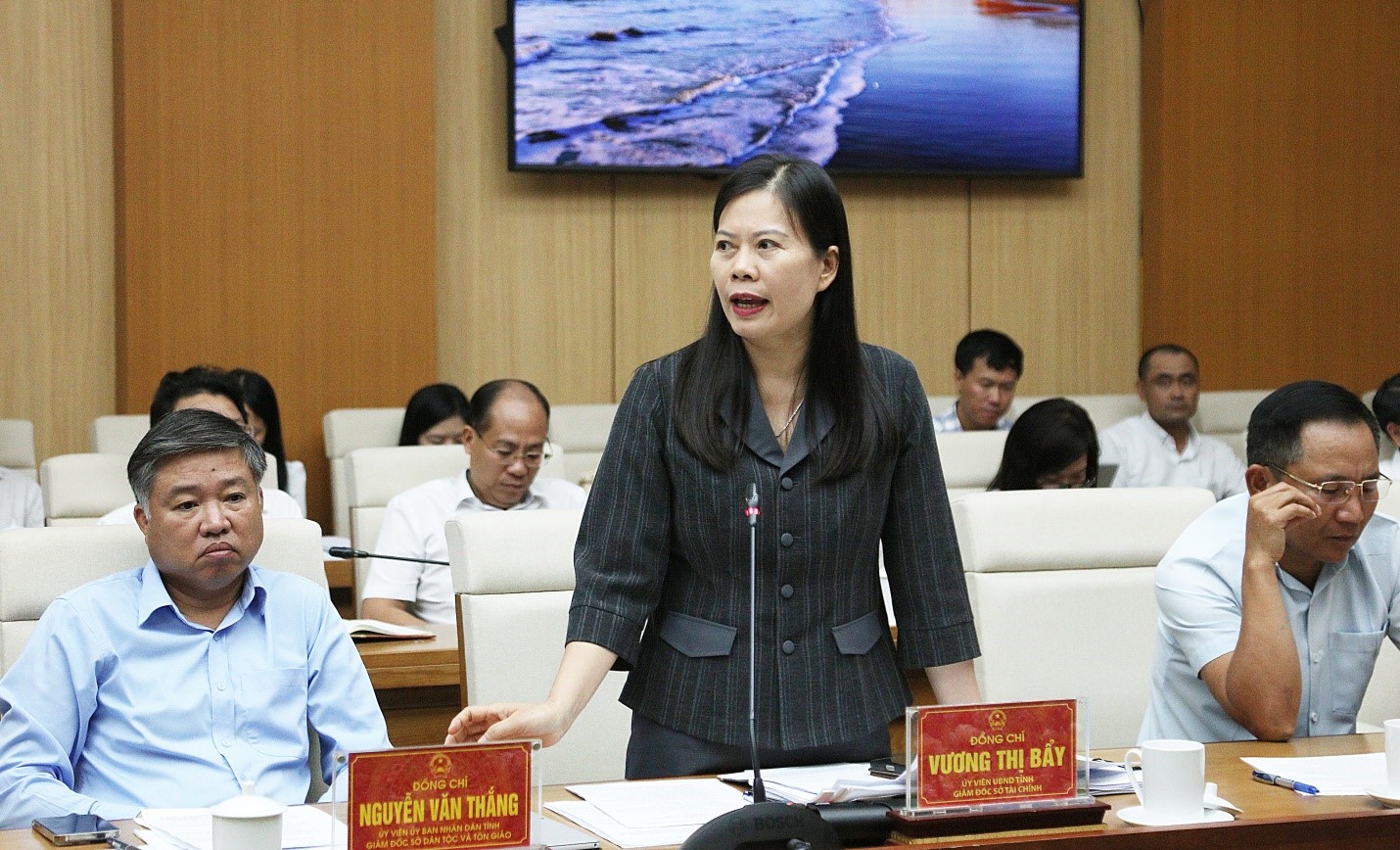 Đồng chí Vương Thị Bẩy, trình bày dự thảo nghị quyết do Sở Tài chính soạn thảo