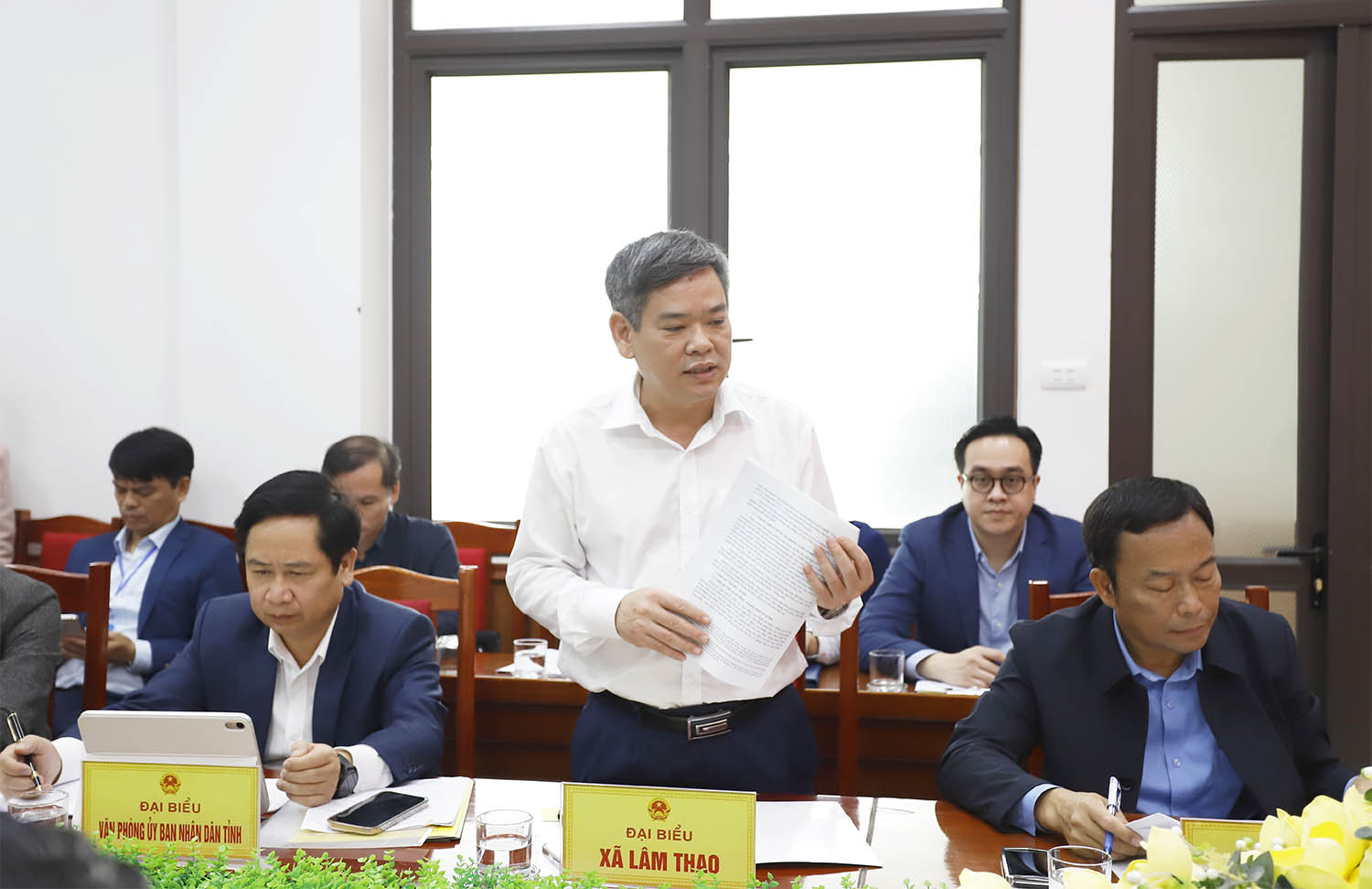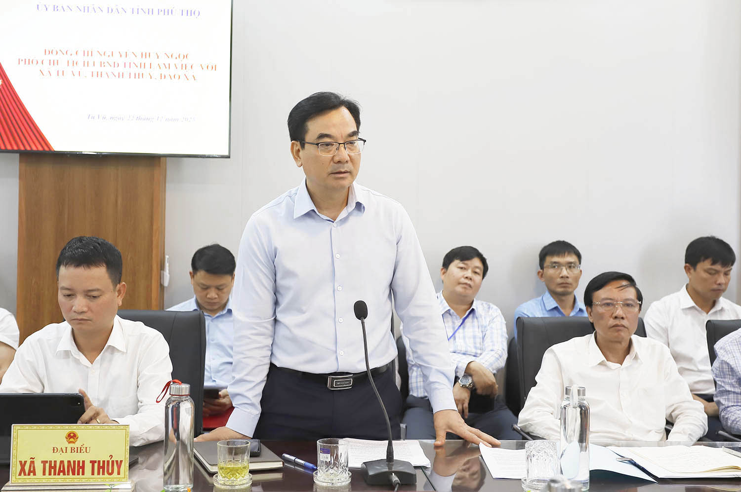 Phó Chủ tịch UBND tỉnh Nguyễn Huy Ngọc phát biểu chỉ đạo tại buổi làm việc với các xã Thanh Thủy, Đào Xá, Tu Vũ