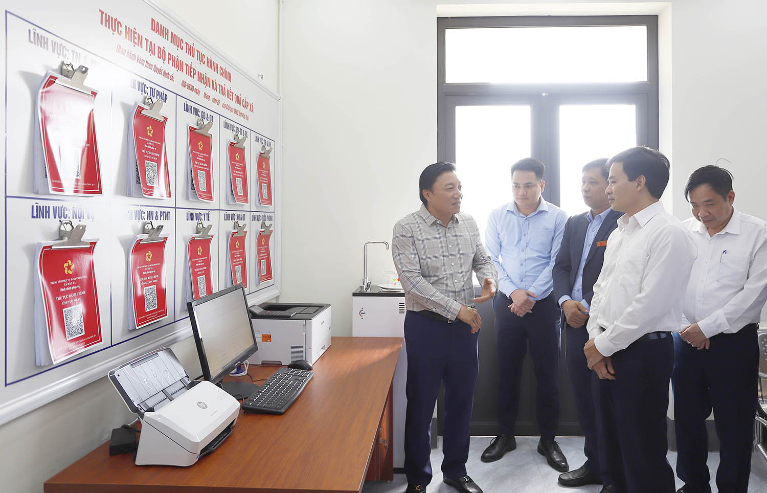 Phó Chủ tịch UBND tỉnh Nguyễn Huy Ngọc cùng các thành viên Tổ công tác kiểm tra tình hình hoạt động của Trung tâm Phục vụ hành chính công xã Đào Xá