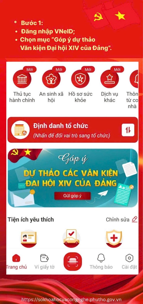 Mục góp ý Dự thảo Văn kiện Đại hội XIV của Đảng trên VneID