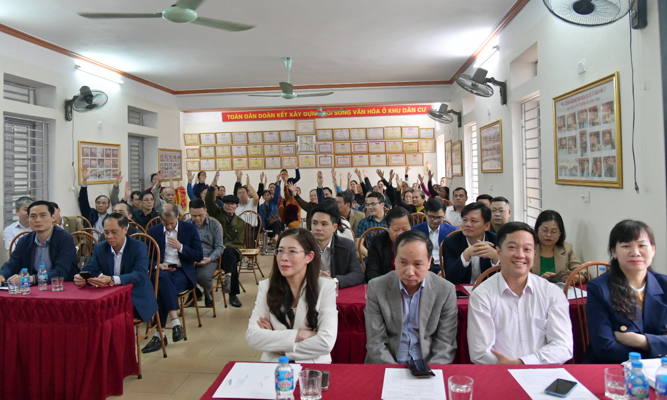 Hội nghị đã tiến hành biểu quyết tín nhiệm và thông qua biên bản Hội nghị theo đúng trình tự, quy định. Kết quả, 100% cử tri tham dự Hội nghị biểu quyết thống nhất thông qua, thể hiện sự đồng thuận cao của cử tri đối với các ứng cử viên được giới thiệu tại địa bàn.