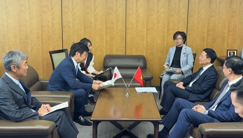 Quốc vụ khanh Nhật Bản trao đổi với Bộ trưởng Nguyễn Mạnh Hùng.
